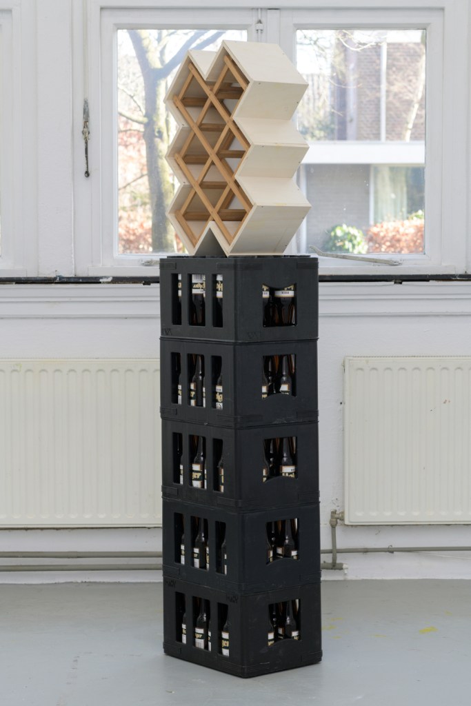 “Tijdens een rondje door het gastatelier is het dan ook voortdurend opnieuw scherpstellen tussen twee polen: de kunst en het leven. Ik probeer in het wijnrek niet alsmaar het oeuvre van bijvoorbeeld Sol LeWitt te zien maar juist de keren dat ik met een glaasje teveel op als laatste ergens het licht uitdeed, maar het is moeilijk om jezelf te ontdoen van je ervaringen als kunstkijker. Met haar onbevangen visie herinnert Kuipers mij eraan dat kunst en leven altijd in elkaar overlopen. Zij combineert het banale met het esthetische, liefst in één en hetzelfde object. Kunst maken is hier nog een ongedwongen feestje waarbij het gekozen eindresultaat bij vlagen zomaar uit haar rol kan vallen als kunst.” (lees meer)